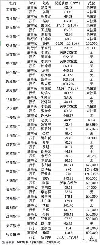 随着上市银行2017年年报披露完毕,银行高管年薪情况也随之揭晓。