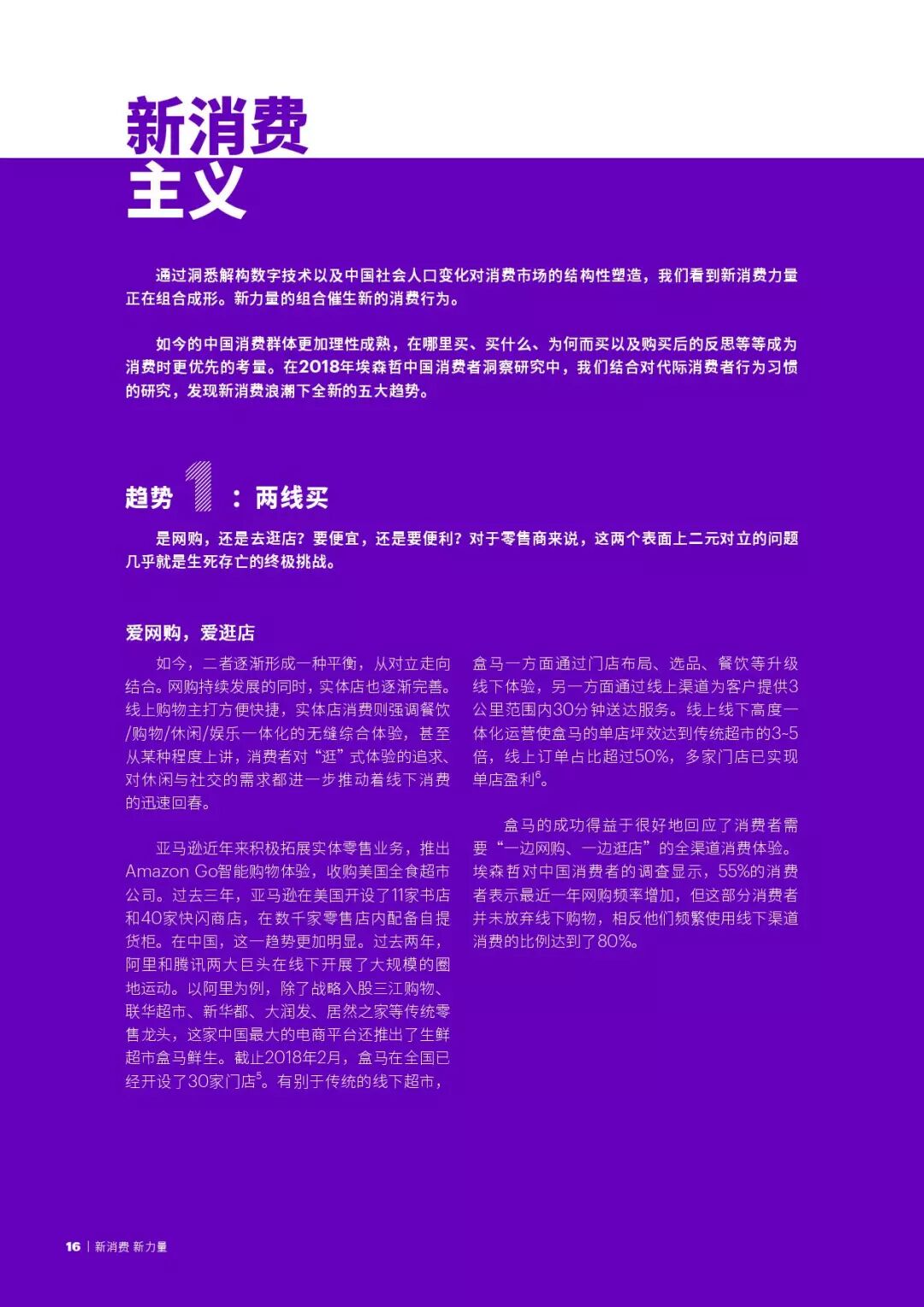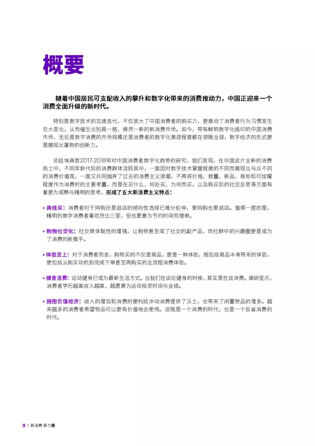 《2018埃森哲中国消费者洞察——新消费 新力量》关键发现: