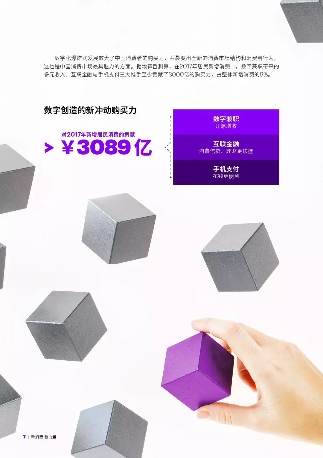 埃森哲发布最新报告《2018埃森哲中国消费者洞察——新消费 新力量》。报告显示,数字技术正推动消费市场加速升级,成为中国消费经济的杠杆。它放大了中国消费者的购买能力,裂变出全新的消费市场结构和消费者行为。比如,数字兼职带来的多元收入、互联金融与手机支付等数字化创造的新冲动购买力,对2017年新增居民消费的贡献超过3089亿。