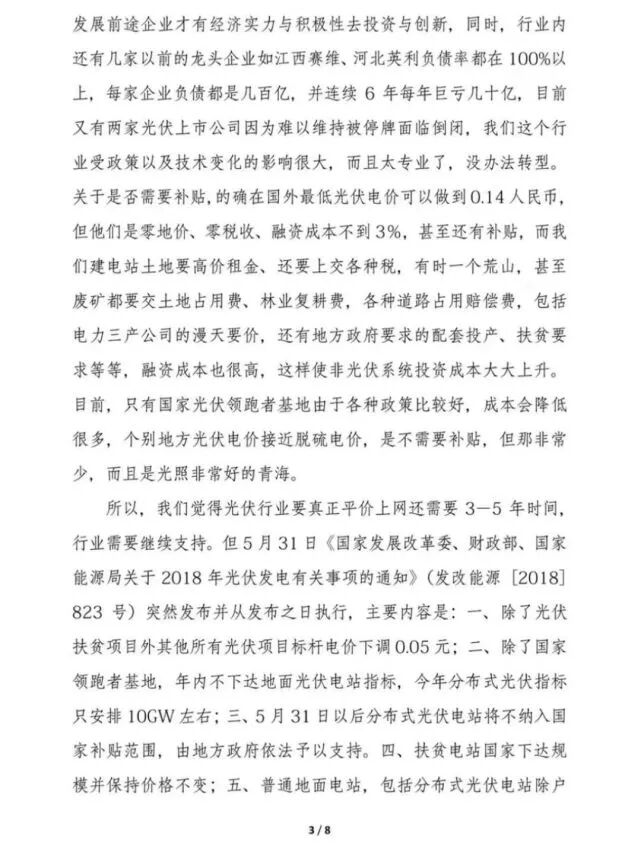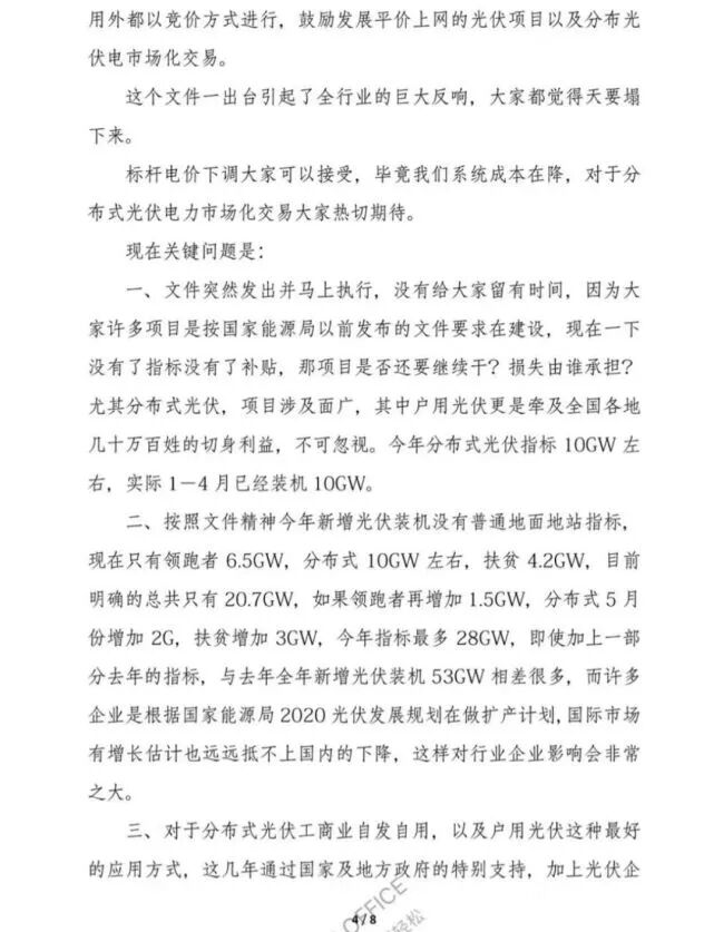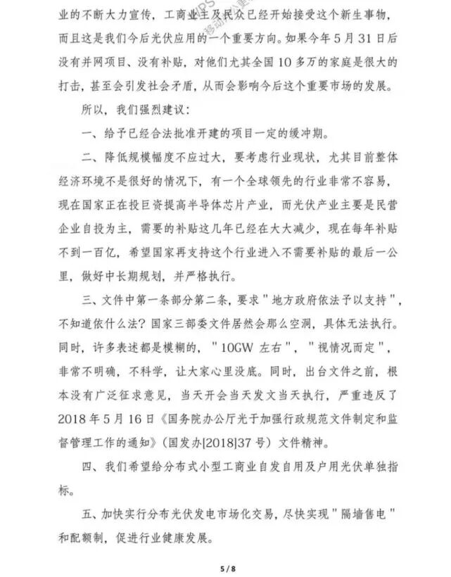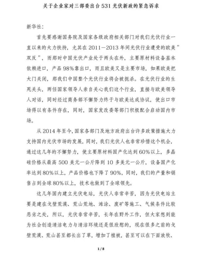 关于企业家对三部委出台531光伏新政的紧急诉求