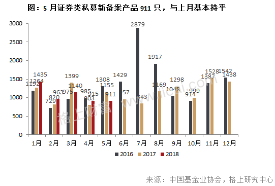 1、私募产品:5月新备案产品911只,与上月基本持平