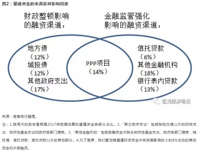 3.金融监管强化对基建融资造成的压力更为明显。在“防风险”的主旋律下,各类监管措施尤其是资管新规的出台,使得金融机构难以主动派生信用并扩张货币总量,加之对资金流向的严格限定,这些都将抑制金融资源流向基建。预计今年由各金融机构提供的基建资金至少缩水至6.2万亿,同比下滑6%。