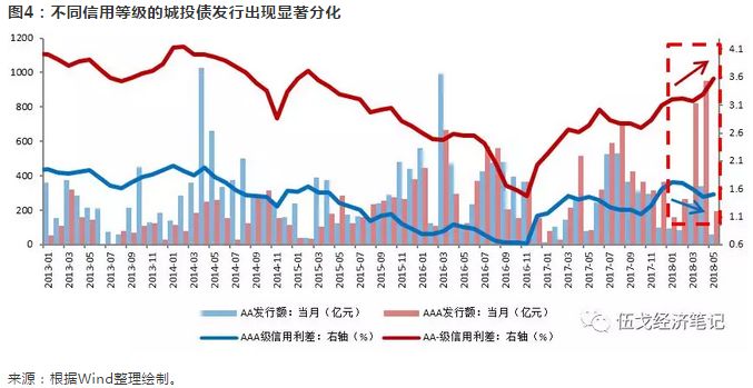 第二,不同信用等级的城投债发行规模今年明显分化,总量上预计会有小幅收缩。受打破刚性兑付的潜在影响,今年以来不同信用等级的城投债的发行出现明显分化:低评级城投债信用利差持续走高,发行额下滑明显;高评级城投债信用利差则呈现下行趋势,发行规模显著增加。我们预计,今年全年高评级城投债扩张2000亿,低评级城投债收缩4000亿左右;城投债发行总规模有望达到1.7万亿,比去年减少2000亿左右,同比下降11%。