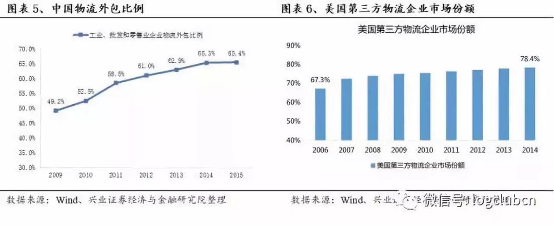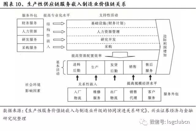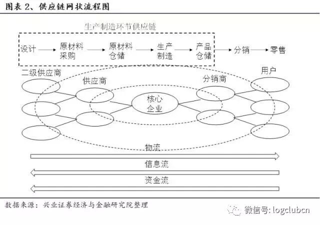 现代供应链服务成为物流业发展新动能 供应链服务由第一方物流→第二方物流→第三方物流→供应链外包发展而来。第一方物流(1PL)是生产商/供应商自己组织、承担商品从起点到终点的流动、交付的物流活动。在这种模式下,生产制造企业必须自己配备运输工具,并购建相应的仓储物流设施。第二方物流(2PL)将物流活动同销售环节一起从生产制造企业的经营活动中剥离出来,由销售商/流通企业/需求方组织和承担。第三方物流(3PL)是指企业将物流活动委托给专业的物流服务企业,同时通过信息系统与物流企业保持密切联系,以达到对物流全程的管理控制。物流外包只是帮助生产制造企业和流通企业实现了物流环节的最优化,供应链管理为解决采购、库存管理、资金、信息采集和决策等多个环节的痛点应运而生。生产商/供应商将非核心业务外包给其他企业,缩短自身运营链条,专注于自身优势、核心环节,提高整体效率,实现总成本领先。 供应链是企业实现产品设计、采购、生产、销售、服务等过程协同的组织形态,是针对实体企业而言的组织形态,而供应链管理服务是第三方企业承接实体企业的一系列外包服务。 从横向流程上看,供应链管理服务是指由客户需求开始,贯通从产品设计到原材料供应、生产、批发、零售等过程(中间或经过运输和仓储),最后把产品送到最终用户的各项业务活动,这一系列过程可以划分为生产制造环节和流通环节。 从纵向流程上看,供应链上任何环节的运转都是由商流、物流、信息流、资金流等“四流”所驱动,而在供应链出现外包以后,工作流的重要性得到加强,即对供应链上可以划分为生产制造环节和流通环节。相关参与者的工作程序进行协调,使各环节能够无缝对接,从而使“四流”更加合理高效运行。 随着生产力的发展,社会分工逐渐专业深化,在产业与消费不断升级的背景下,产品生产从注重速度转变为注重质量和效率。传统供应链由于层次较多、结构松散,节点企业分别制定各自的运作计划,独立地进行库存与订货决策,使得核心企业的供应链管理能力不够强,上游企业无法实时共享末端用户的需求信息,难以准确及时传导需求信息、实现协同发展,容易产生“牛鞭效应”,整个供应链的运作效率不高。 党的十九大报告首次提到现代供应链的概念,强调深化供给侧结构性改革,加快建设制造强国、发展先进制造业,推动互联网、大数据、人工智能和实体经济深度融合,培育现代供应链、形成新动能。相比于传统供应链,现代供应链更加扁平化,各环节之间相互融合、信息互通,其重要特点就是“智慧化”、“数字化”。 现代供应链要求大数据支撑,各环节企业智能协作、信息共享,实现“互联网+供应链”的深度融合,能够克服传统供应链的诸多痛点,进一步提高链条全流程的效率。《指导意见》中也明确提出要打造大数据支撑、网络化共享、智能化协作的智慧供应链体系,与互联网、物流网深度融合。智慧供应链从精益生产开始,拉动精益采购、精益物流、精益配送等各个环节。现代供应链具有整合、创新、协同、共赢、绿色、开放六大核心特征。在政府与社会各界的推动与支持下,我国现代供应链的发展水平将得到全面提升,现代供应链成为中国经济发展的新动力。 供应链流通环节发展迅速,消费物流势头最猛 供应链外包的初级形式是物流外包。随着商品经济的发展和信息技术的进步,物流外包已成为中国的普遍现象,物流外包比例逐年提升、第三方物流发展迅速,但与发达国家仍相比有一定差距。 2015年中国工业、批发和零售业企业物流外包比例达到65.4%,相比于2009年提升了16.2个百分点。中国第三方物流收入规模从2009年的610亿美元增长至2015年的1638亿美元,复合年增速达15.2%,且2015年在收入规模绝对额上已超过美国。但是与世界上发达国家相比,我国的物流外包仍有一定差距。美国2014年第三方物流企业市场份额达到78.4%,而我国同期物流外包比例没有达到70%。 供应链流通环节主要包括原材料运输、产品运输,其中,以电商带动的消费物流发展势头最为迅猛,且进入了相对较为成熟的阶段。从运输的子行业快递来看,这是标准化程度最高的运输服务。电商率先在供应链方面进行变革,电商的快速发展刺激产生了多家快递公司,并正日益促进电商与快递的融合交织。 快递行业背靠电商保持高增速,近年来快递高速发展的总需求与电商销售爆发高度相关。2017年快递行业总体收入近5000亿元,2011-2017年快递业务量增速与网购交易额增速的基本趋势一致,呈现较高的相关性。从中长期来看,电商渗透率仍有2倍的上升空间才至理论上限,我们对电商进一步增长从而推动快递企业的高增长持乐观态度。 与流通环节相比,当前生产环节供应链水平未能与产业升级相匹配 一、产业结构持续升级,发展制造业是建设世界强国的必经之路 产业升级主要是指产业结构的转变、协同发展以及生产要素的优化组合以提高产业效率、产品质量等。2015年5月,我国出台了《中国制造2025》,为实施制造强国第一个十年提供了行动纲要。产业升级是中国制造业的必经之路,智能制造将贯穿全过程。 二、生产环节的供应链服务发展空间巨大 社会分工带来的效率和成本优势推动着代工行业的持续发展,企业在一定阶段后会选择“去制造化”等轻资