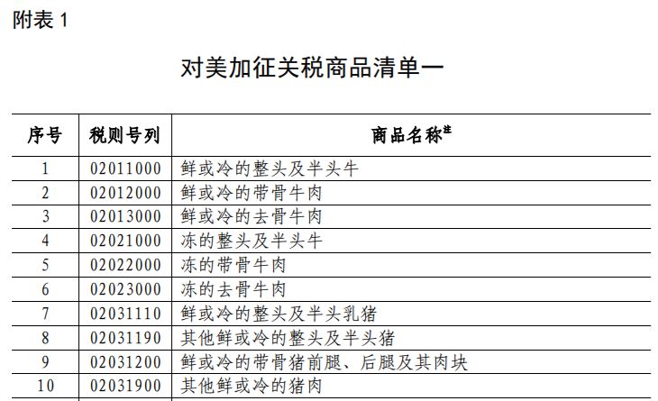 附:对美加征关税商品清单