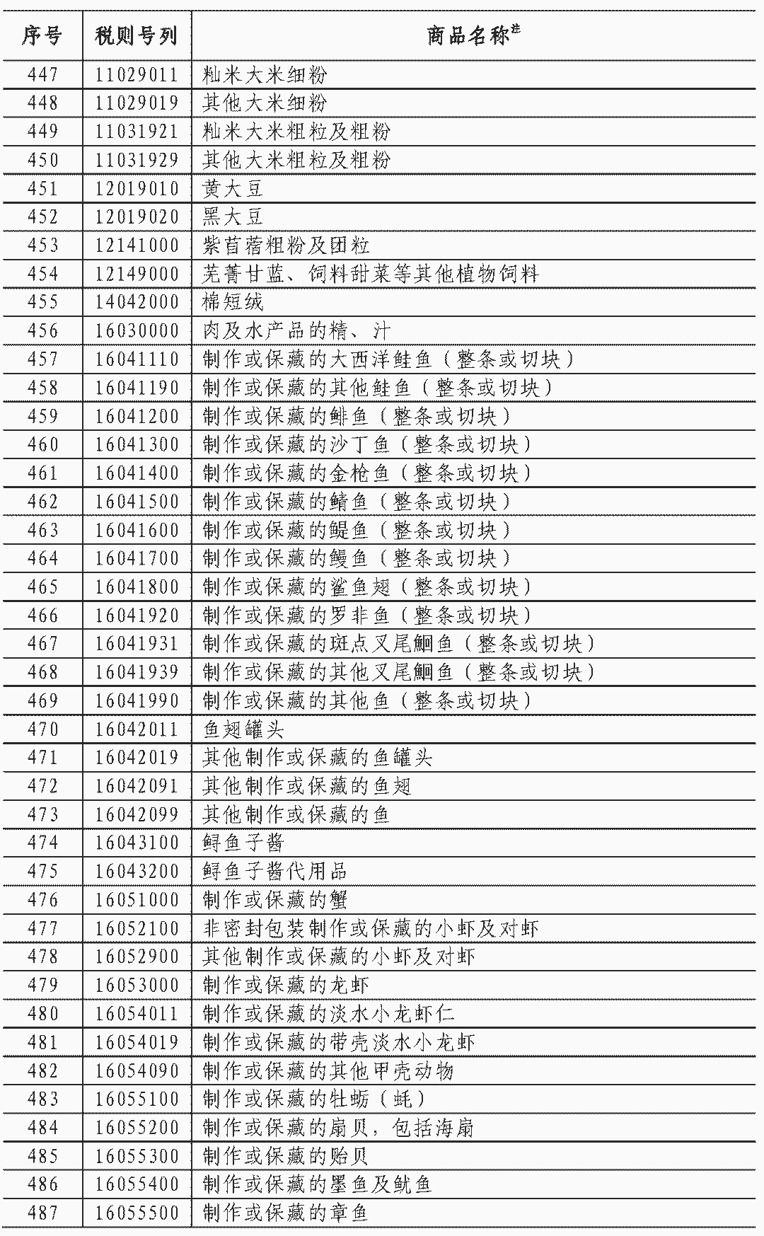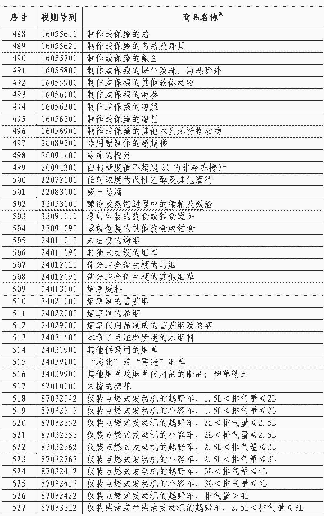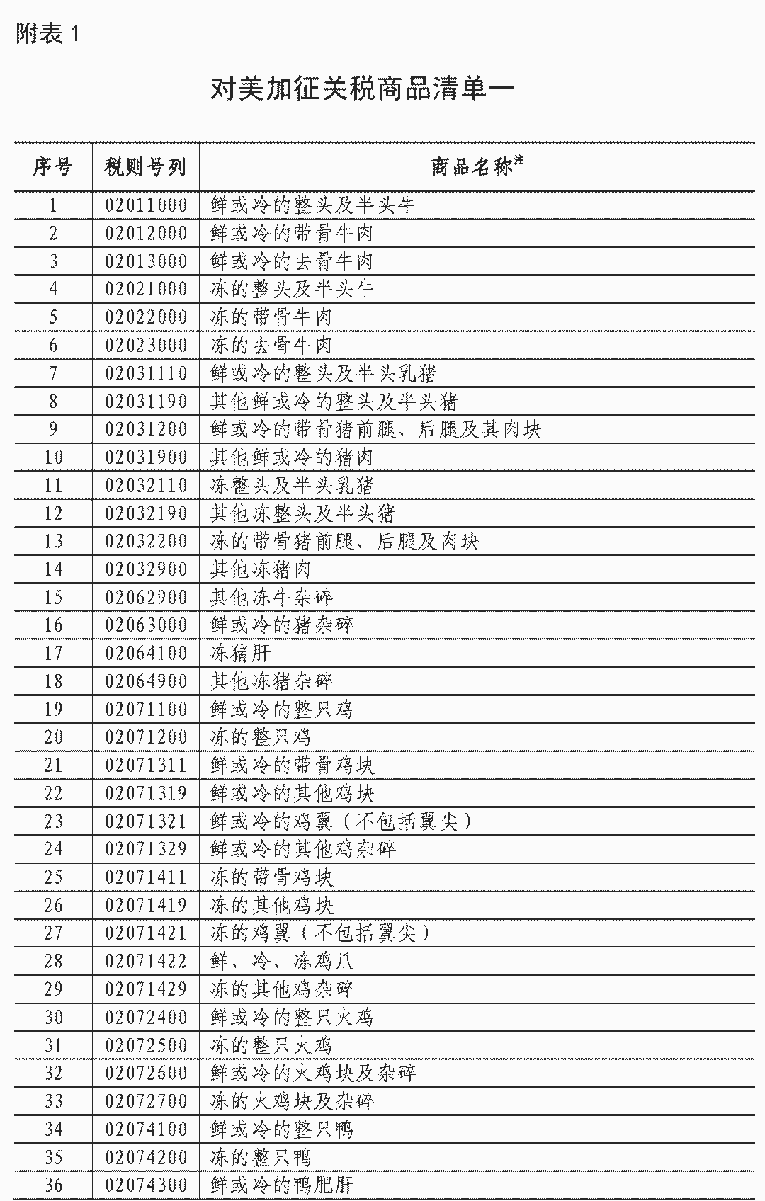 一、对农产品、汽车、水产品等545项商品,自2018年7月6日起实施加征关税,具体商品范围见附表1。