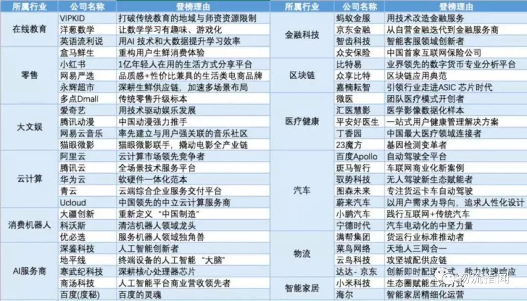 福布斯发布中国50家最具创新力企业:满帮、菜鸟、云鸟、达达、盒马、永辉、小米、海尔…