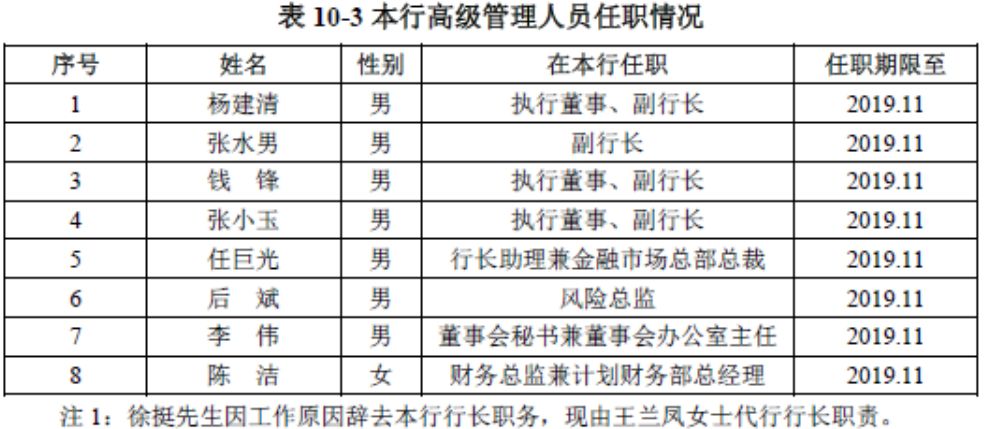 行长空缺一年之久,此前坊间曾推测,彼时该行的副行长或将是有力的继任竞争者。今年6月11日,中共苏州市委组织部公布苏州市市管领导干部任前公示名单,杨建清、钱锋拟任苏州银行党委委员,拟提名为苏州银行副行长,彼时依然无行长提名人选。