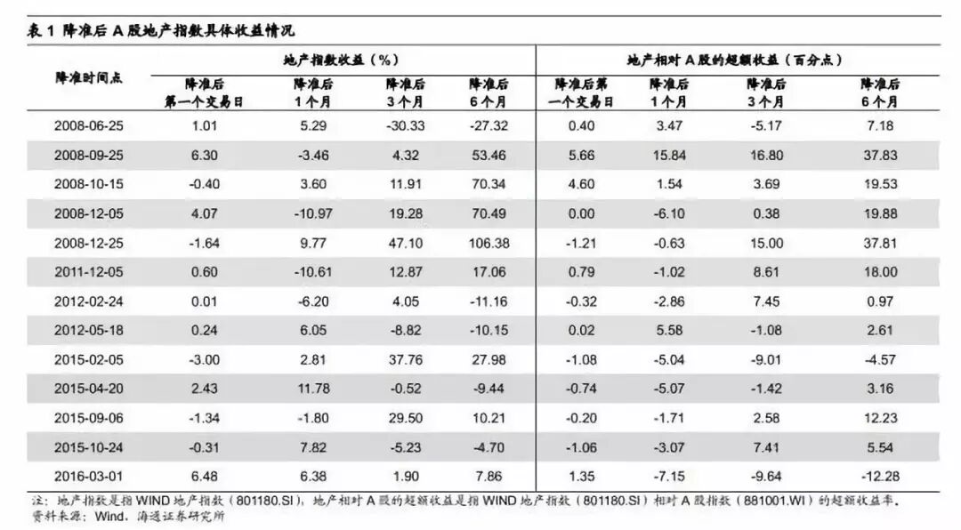 从历史规律看,A股地产指数在降准之后表现不俗。