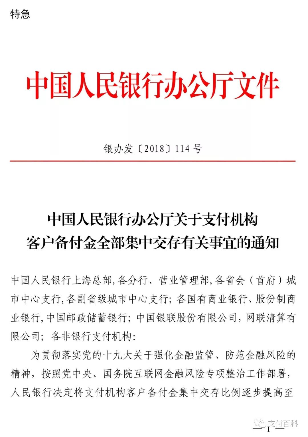 突发!央行发布支付机构客户备付金集中交存通知,明年1月14日前100%交存!含原文!