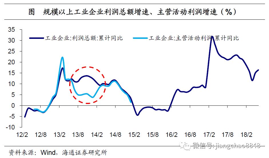 虽然统计局仅在12-14年间按月公布主营活动利润数据,15年起只公布利润总额数据。不过,13年下半年两者明显背离,已经能很好的说明两者差异了。