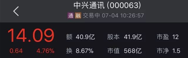 事实上,上涨态势从昨天开始持续,前一交易日,中兴通讯A股尾盘拉升,罕见出现涨停 ,港股也上涨7.55%。 据央视新闻客户端7月4日消息,美国商务部在当地时间7月2日发布公告称,从公告发布之日起至8月1日,在限制条件下解除对中兴通讯公司的出口禁售令。 值得注意的是,这次有条件解除的限售令,并不代表长达7年的禁售令会解除,但仍对公司的股价起到了提振作用。