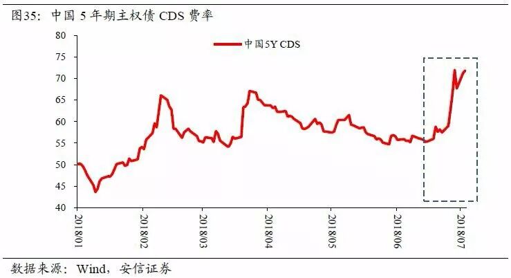 下图显示了中国美元主权债的违约风险。这一风险最近明显上升,与中国股市加速下跌同步出现,需要引起注意。