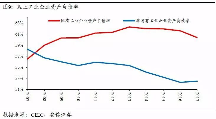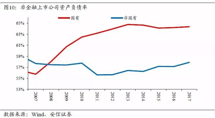 研究不同口径的企业部门的资产负债率数据容易发现,无论是工业企业还是非金融上市公司,以资产负债率形式体现的杠杆上升主要集中在国有企业;作为对比,金融危机以来,民营企业的杠杆率总体上没有上升。