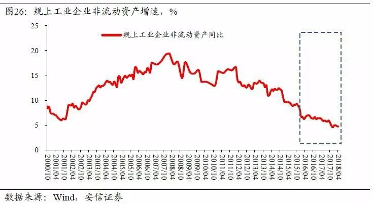 但是,处在分母上的总资产增速(或新增产能的多寡)在周转率的变化过程中也发挥着微妙的作用。显然,在宏观上总资产增速与固定资产投资等活动紧密关联。