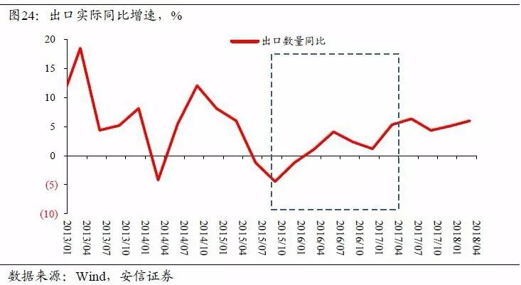 但是,此前财政去杠杆的积极影响仍然不可忽视。例如,在今年全球经济减速的背景下,中国实际出口继续加速,这与此前的汇率贬值似乎存在关联。