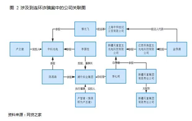从近期的报道中,我们可以了解到此次涉及到连环诈骗案中的公司分别有中科光电、上海澜升实业集团有限公司、新疆天富蓝玉光电科技有限公司等。