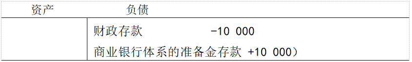 虽然这一步尚未投放基础货币(财政存款不算基础货币),但当财政部用钱时,就投放基础货币了,此时央行的T型账户如下: