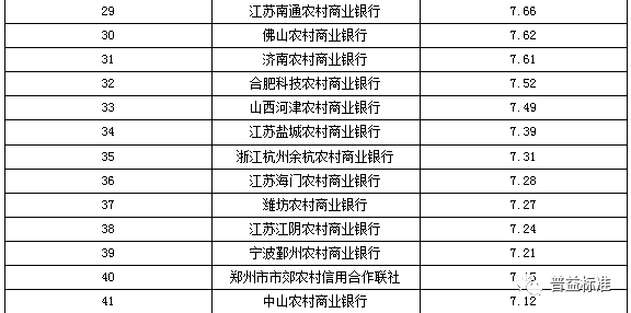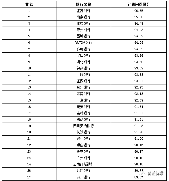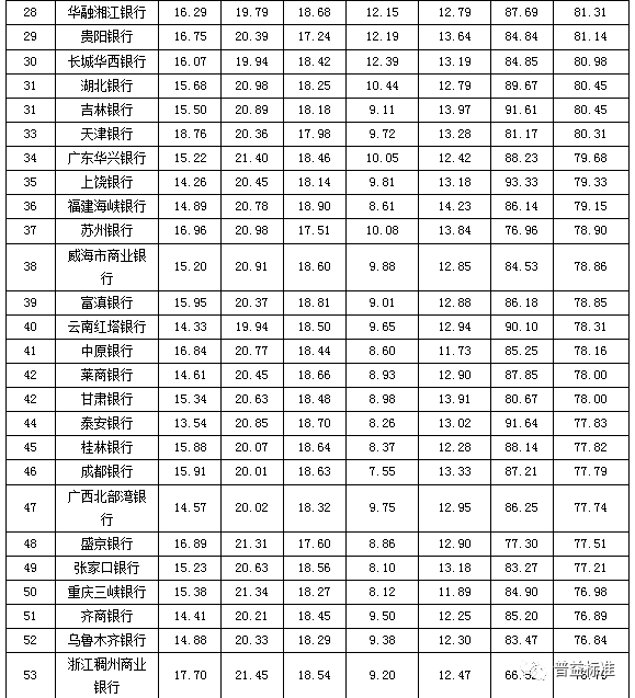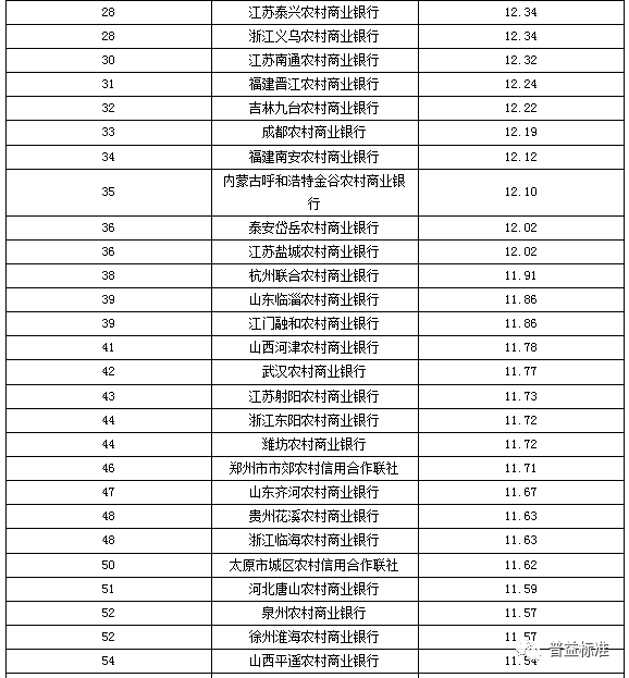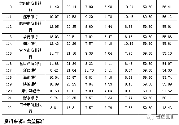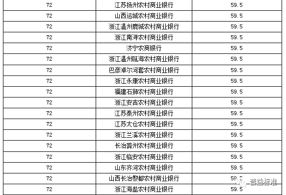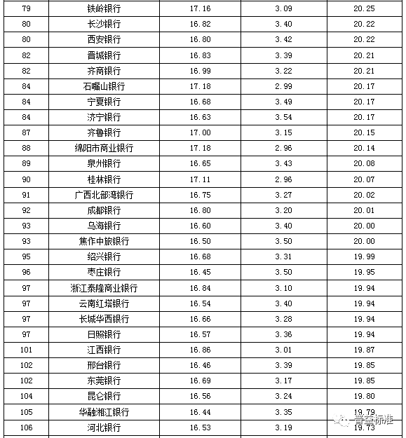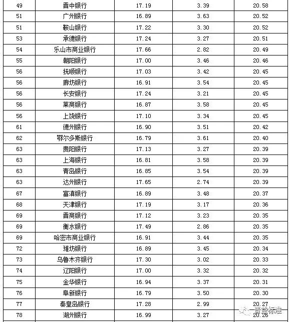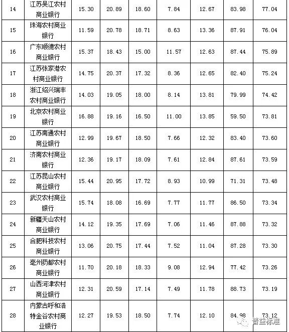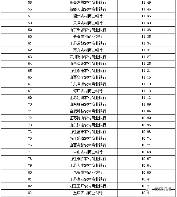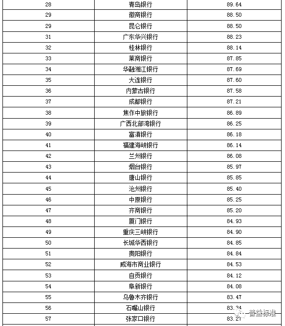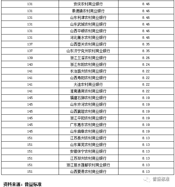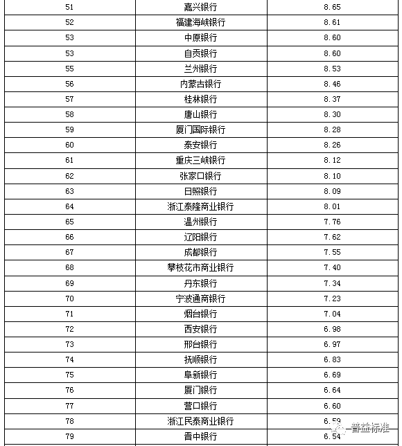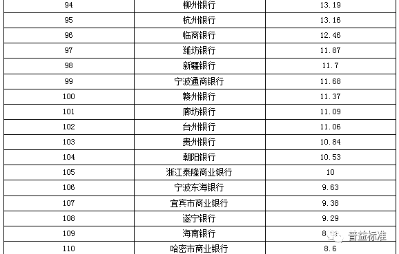 信息披露规范性:全国性银行排名前五的依次为中国建设银行、中国光大银行、招商银行、兴业银行和中信银行;城市商业银行排名前十的依次为江苏银行、南京银行、徽商银行、福建海峡银行、嘉兴银行、厦门银行、晋城银行、吉林银行、宁波银行(并列第8)和东莞银行;农村金融机构排名前十的依次为宁波鄞州农商银行、厦门农商银行、北京农商银行、江苏江南农商银行、浙江绍兴瑞丰农商银行、东莞农商银行(并列第5)、青岛农商银行、山西榆次农商银行、珠海农商银行、宁波慈溪农商银行。