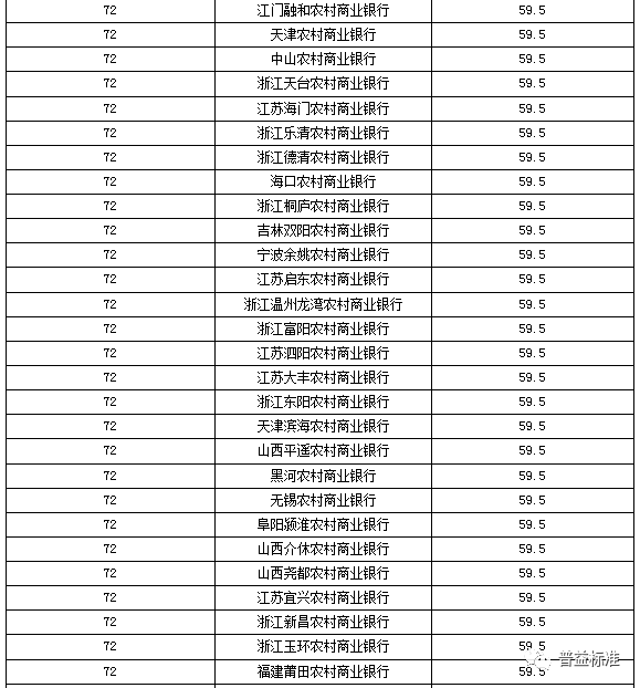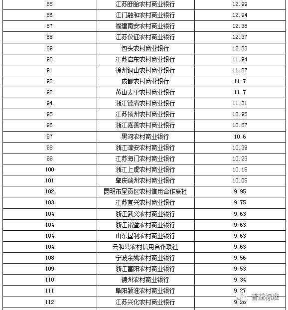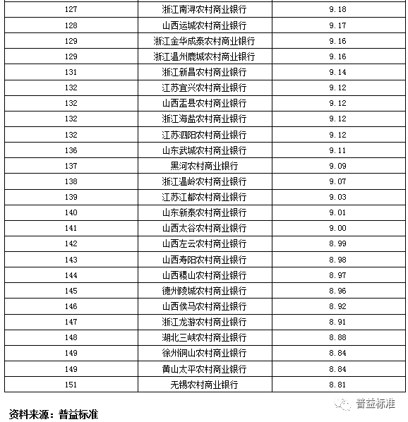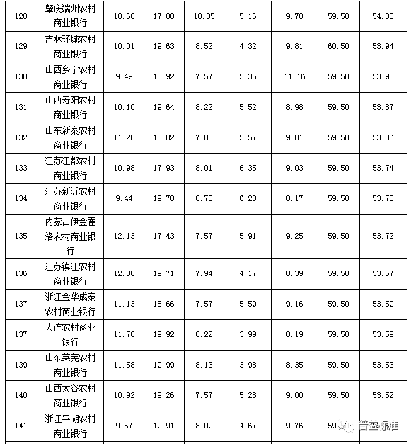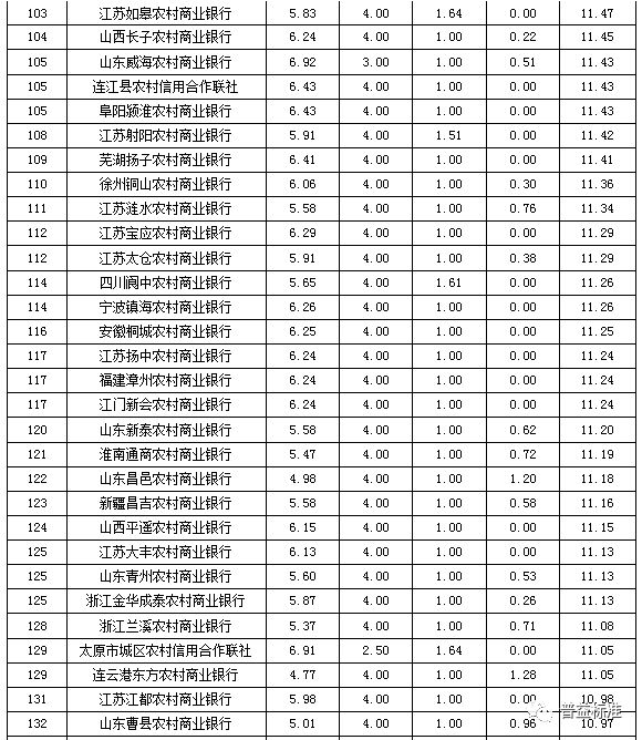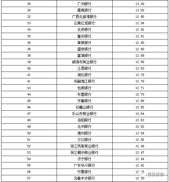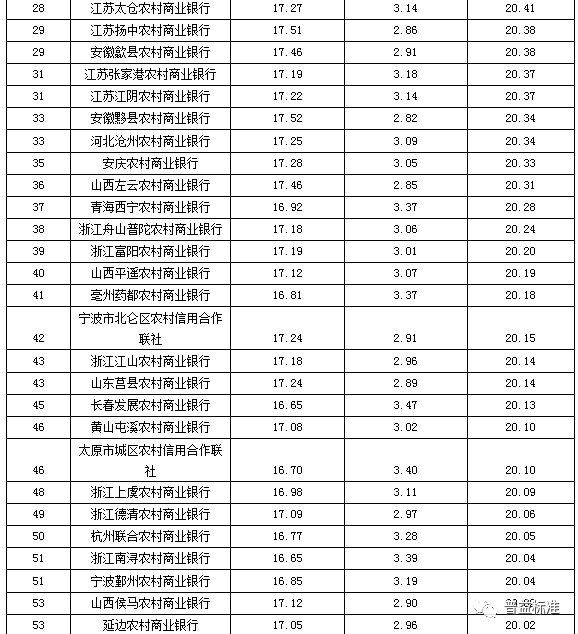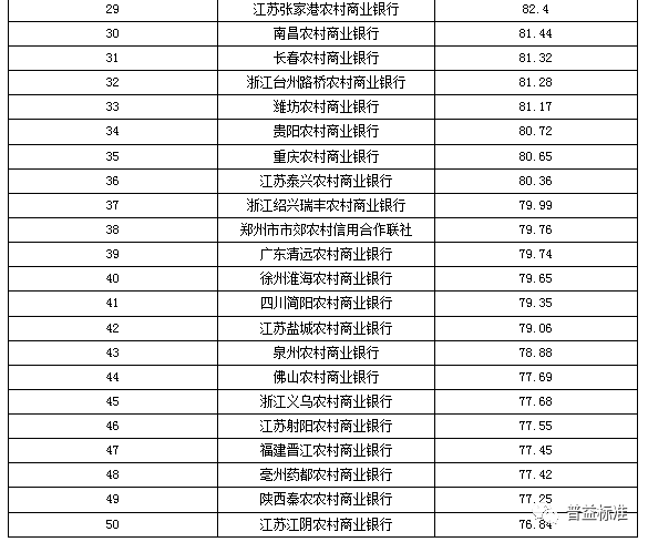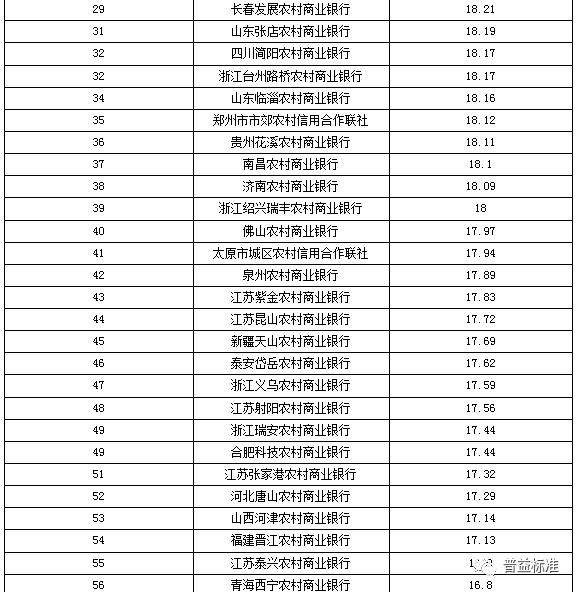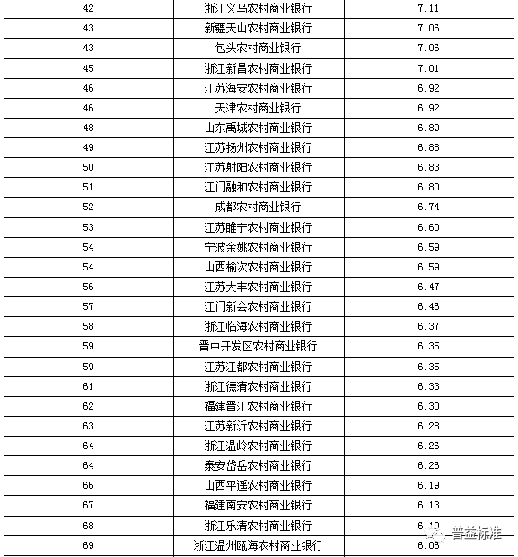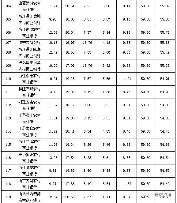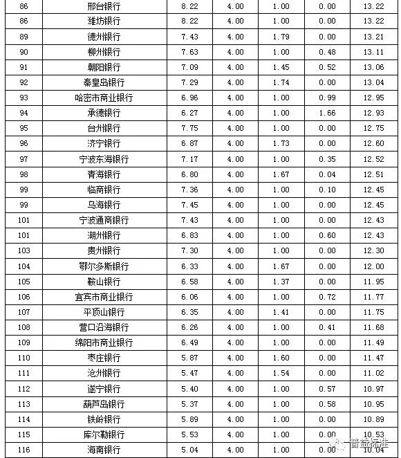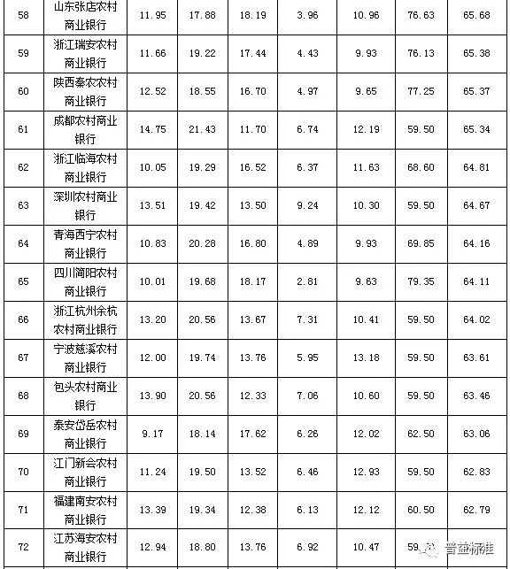 信息披露规范性:全国性银行排名前五的依次为中国建设银行、中国光大银行、招商银行、兴业银行和中信银行;城市商业银行排名前十的依次为江苏银行、南京银行、徽商银行、福建海峡银行、嘉兴银行、厦门银行、晋城银行、吉林银行、宁波银行(并列第8)和东莞银行;农村金融机构排名前十的依次为宁波鄞州农商银行、厦门农商银行、北京农商银行、江苏江南农商银行、浙江绍兴瑞丰农商银行、东莞农商银行(并列第5)、青岛农商银行、山西榆次农商银行、珠海农商银行、宁波慈溪农商银行。