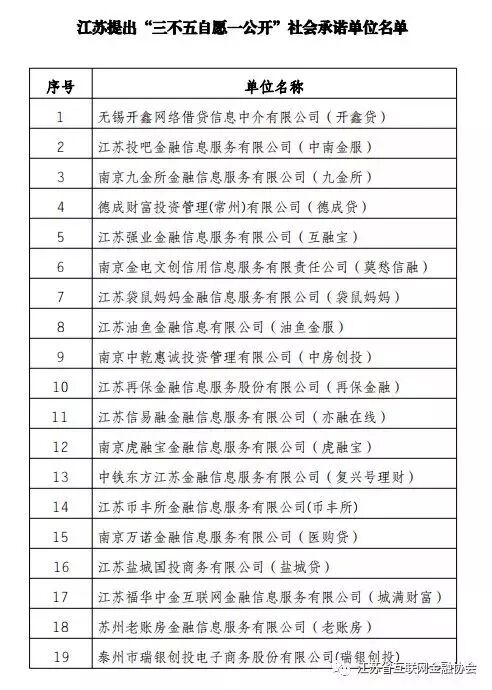 江苏 8月6日,江苏省互联网金融协会在其官方微信号发布《江苏多家网贷平台发声,提出“三不五自愿一公开”的社会承诺》称,日前,江苏省十九家P2P网贷平台同时发声,共同提出“三不五自愿一公开”的社会承诺。 此次“三不五自愿一公开”的社会承诺是江苏十九家网贷平台的全体高管、中层管理人员在整个行业信心受挫的市场环境下的主动发声,自愿承诺。内容包括: 一、恪守平台定位。平台承诺在经营运行过程中坚持金融信息中介功能定位,坚持做传统金融的有益补充,坚持服务普惠金融长尾用户。 二、坚决做到“三不”。平台承诺在经营运行过程中严格按照P2P网贷行业专项整治规范和网贷行业“1+3”监管体系政策要求,积极整改,力求合规,坚决做到“不违规、不失联、不跑路”。 三、积极拥抱监管。平台承诺在经营运行过程中积极落实行业专项整治各项要求,提高风险识别能力,切实加强风险管理;严格执行行业监管制度,不新增任何形式违规业务;积极遵守行业自律规范,强化自身的自律意识和自律能力。 四、主动接受监督。平台承诺在经营运行过程中自愿接受各监管部门对平台的检查与指导;自愿接入江苏网贷自律管理系统,接受行业自律统一管理;自愿接受投资人的质询与现场检查;自愿积极开展保护投资人合法权益,开展投资人风险教育活动;自愿接受社会各界监督,及时对外宣传和披露平台真实、准确、完整的信息。 五、公开联系方式。公开除平台官网客服联系方式外的绿色联系电话通道,投资人遇特殊情况可直接与平台中高管进行联系,平台收到投资人等的咨询信息后,会在第一时间内给予答复。 此外,这些公开发布“三不五自愿一公开”承诺的平台还通过线上投资人教育、线下投资人见面会、投资人监督员现场直播、公益活动等多种形式,加强与投资人的充分有效沟通,增进投资人对平台及资产项目的深入了解和信任。 从短期来看,整个网贷行业此轮“爆雷”事件在一定程度上给“踩雷”投资人带来资产损失,影响广大投资人的短期投资情绪和恐慌心理,也引起社会各界的广泛关切。但从长期来看,此轮“爆雷”事件是市场对前期具有“原罪”的违法违规平台风险的一次市场出清和有效释放,是市场良币驱逐劣币的良性导向,有利于整个行业在未来发展更加规范、健康的成长。本次参与集体发声的十九家P2P网贷平台能够在当前的行业环境下做出“三不五自愿一公开”的公开承诺,表明了平台敢于接受社会监督、勇于担当企业责任,致力于对平台投资人的权益的保护,稳定网贷市场投资人情绪,增强网贷行业信心,为江苏省网贷行业的生态环境改善发挥更重要的作用。
