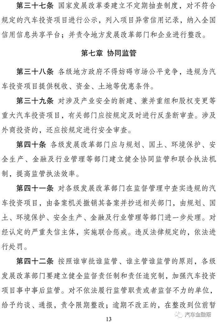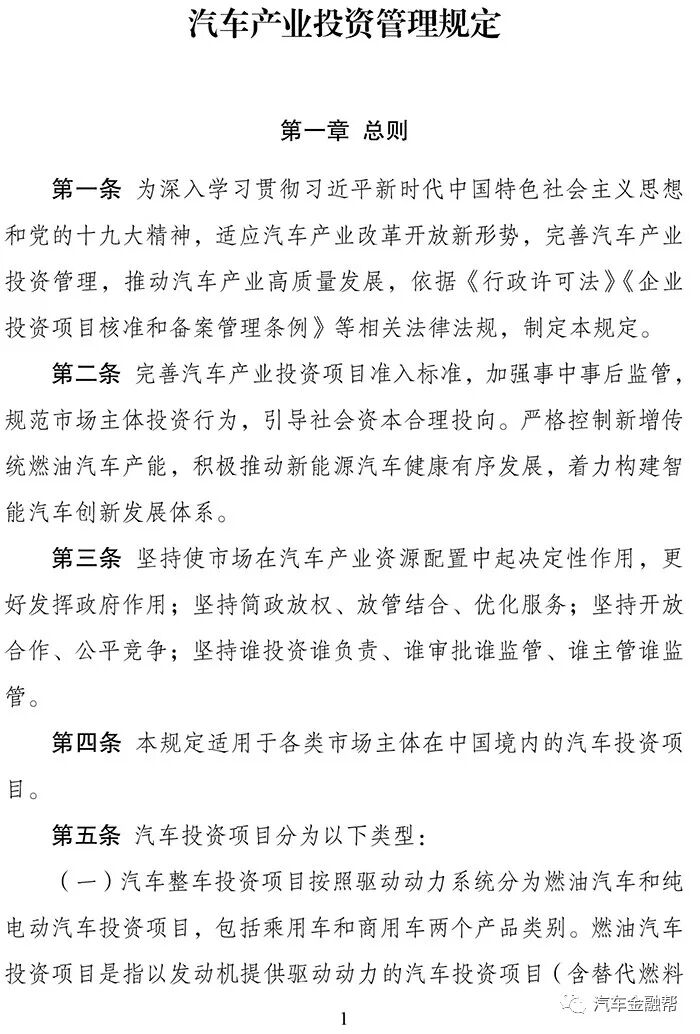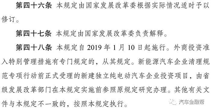 来源:汽车金融帮发改委12月18日,《汽车产业投资管理规定》已经由发改委主任办公会议审议通过,该《规定》将于2019年1月10日起施行。发改委在其第