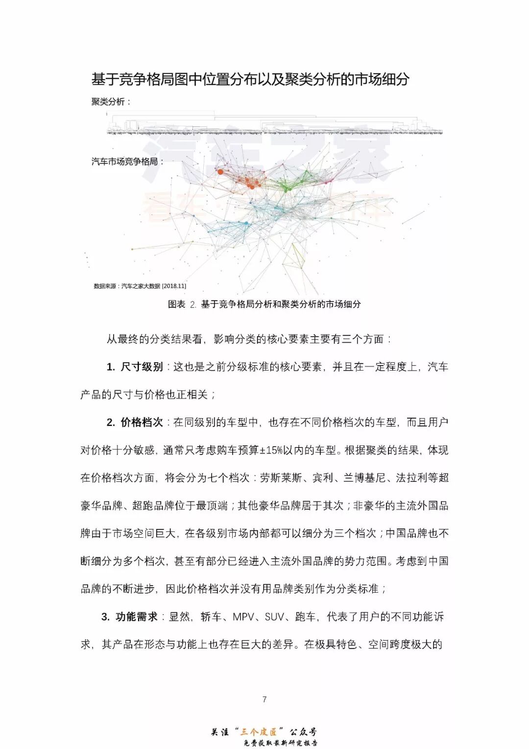 2017年,在竞争格局图的基础上,结合聚类分析,将市场进一步细分为更细致的竞争圈。在乘用车市场产品不断多样化的当下,传统的级别划分已经无法精确定位车型产品了,竞争圈可以更精确的锁定市场定位相近的竞争对手。随着时间的变化、市场的不断竞争,每个车型所属的竞争圈也会有所变动、迁移,因此也将竞争圈称为“动态族群”。