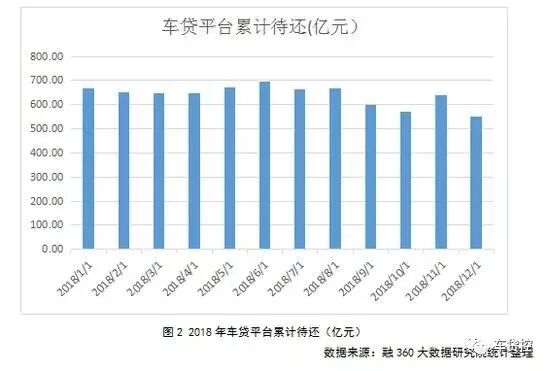 根据融360网贷评级组重点监测数据显示,2018年12月底车贷平台待还余额为551.42亿,网贷行业待还余额为7279.33亿,其中车贷平台占比7.57%。车贷资产待还余额占网贷行业待还余额的比例逐步下降,可以看出车贷平台也纷纷转型其他资产。