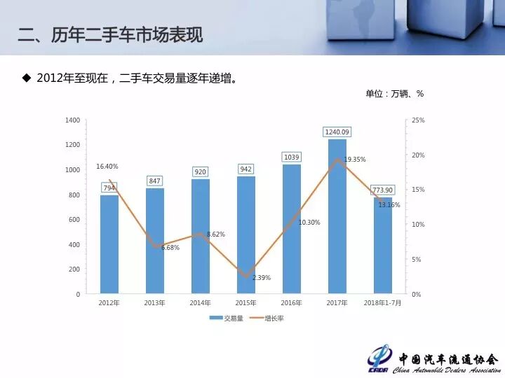 导读:2018年7月,全国二手车市场交易量113.65万辆,交易量环比上升7.55%,去年同期交易量为100.19万辆,本月同比上升13.44%。2018年1-7月,全国二手车累积