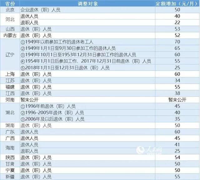 其他省份本次调整对象为2018年12月31日前办理退休、退职手续的人员。