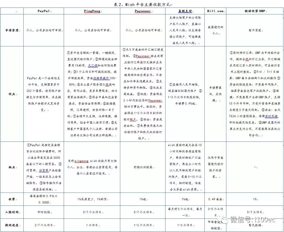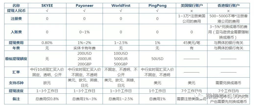 下面比较亚马逊和wish两个主流电商平台上主要的跨境收款通道: