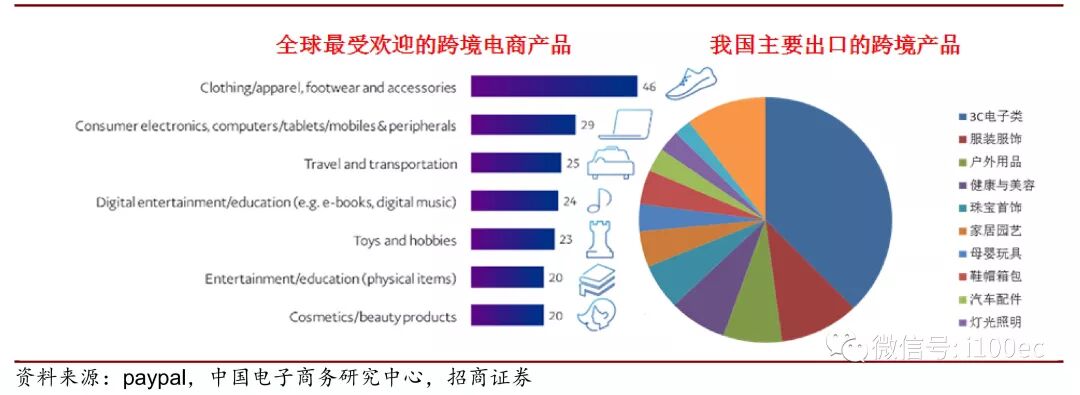 中国主要的出口商品与全球最受欢迎的跨境电商商品完美契合;另一方面,在主要的跨境电商出口国中,中国的成本优势最大,份额最高。