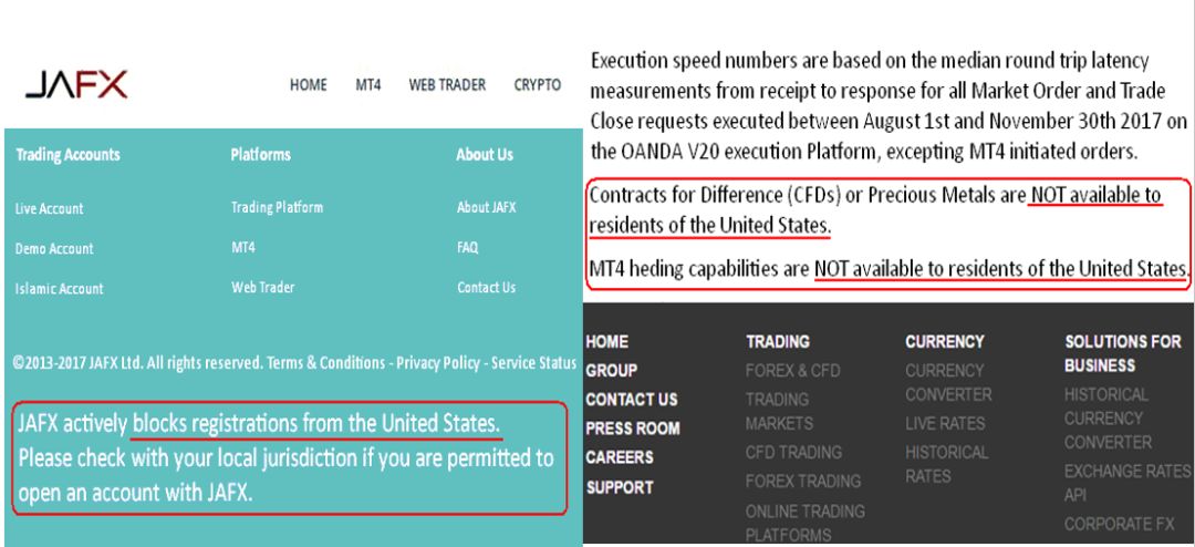 此外,美国CFTC还要求,未在美注册、不向美国人提供服务的外汇经纪商,也须在其网站明确提示“不为美国人提供相关金融服务”。