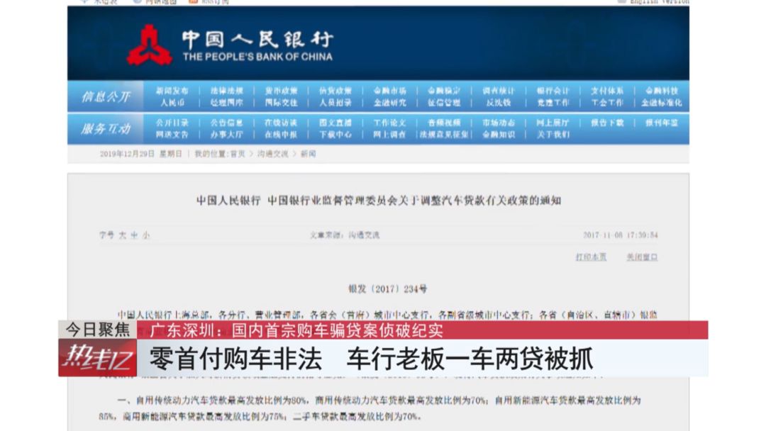 在掌握了犯罪团伙的活动规律之后,2019年10月30日,针对分布在全国十几个省市的犯罪嫌疑人,深圳龙岗警方开始收网。警方共出动300余名警力,分37个抓捕小组,直扑9个犯罪窝点和多个藏身处。据龙岗分局经侦大队副大队长梁新成介绍,警方共抓捕53名犯罪嫌疑人,刑拘了44名犯罪嫌疑人,沉重打击了犯罪团伙,同时也冻结了一百多万涉案资金,缴获了大量的合同和一些车辆买卖凭证。这些犯罪嫌疑人大多都有自己的车行,本来都属于正规经营。但后来出于人情原因和利益引诱,他们也不由自主走上了这条错路,甚至投入了大量资金,加入这种所谓的“零首付购车”的交易。而他们口中的这种所谓的零首付,其实说白了就是叫一车两贷。根据犯罪嫌疑人自己的解释,第一笔贷款可以来自于厂家免抵押贷款,通过贷够一定年限就可以取得一定数额的资金。第二笔贷款来自抵押贷款,贷够一定比例能再贷几万块钱。这样贷款的操作模式,会导致购车人所要偿还的贷款远远高于所购车辆的实际价值。犯罪嫌疑人刘某说他也曾怀疑过这种零首付购车是有问题的。但是因为是同行要求帮忙,为了获得每辆车售出后所得到的佣金,他就没有多想。他现在已经认识到这种行为的本质并不是真实购车,而是在拿到车以后直接把车过户掉或者卖掉,客户也不再还款。
