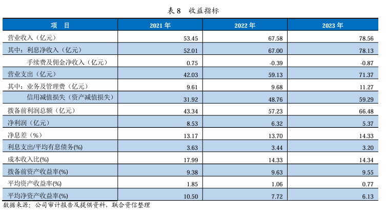 实现利润5.37亿元,位列消费金融行业第6名。各收益指标如下: